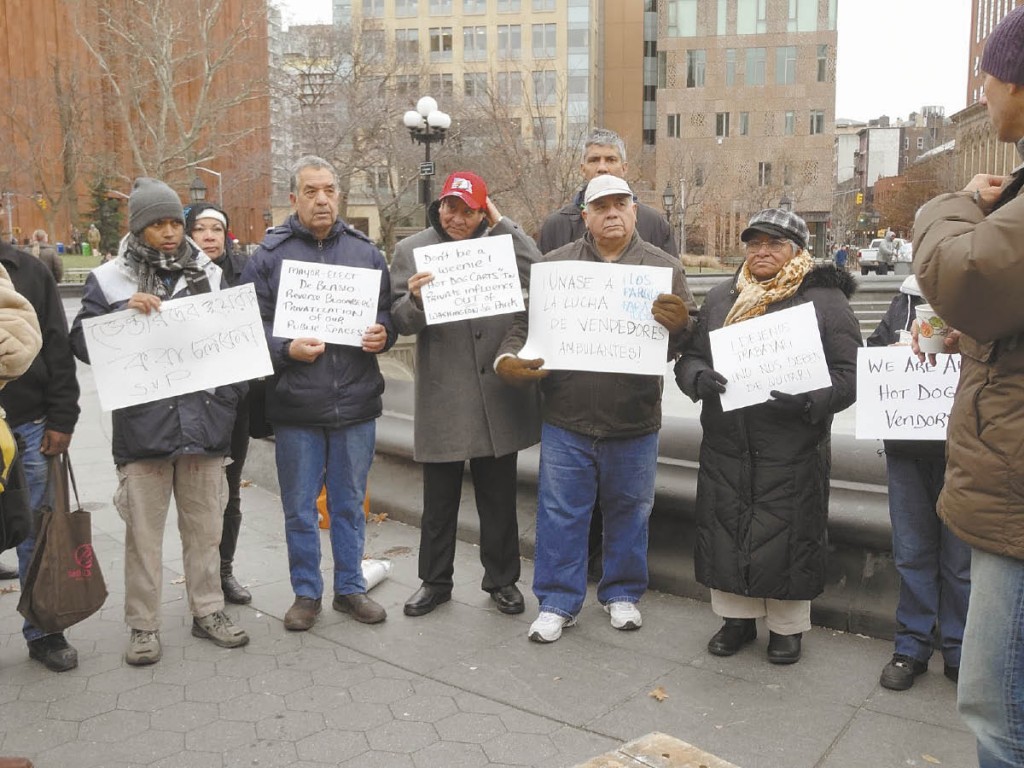Hot dog vendors stage a rally in Washington Square Park on Dec. 8 protesting the city’s decision to not renew their vending licenses